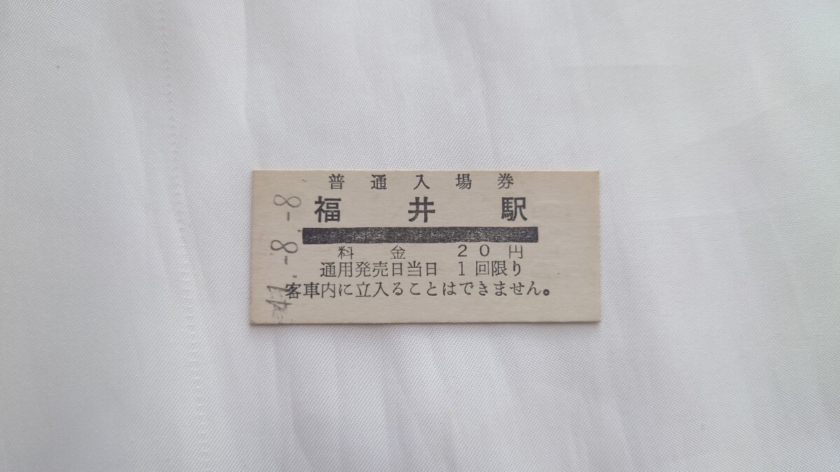 - ▽京福電鉄▽福井駅20円入場券▽B型硬券昭和41年