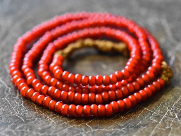 > ●わくわく とんぼ玉★得割! ホワイトハーツやや濃赤偏平円形中粒ビーズ一連(Φ5.0mm)トンボ玉 ガラスビーズ ホワイトハート【Z24030A】