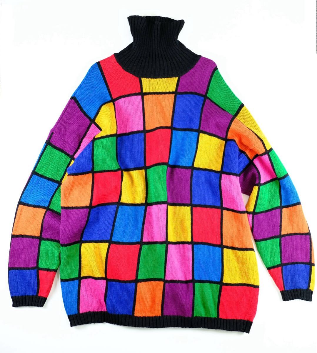 - 1990s ビンテージ タートルネック カラフルチェック ニットセーター 古着屋 XXL ヴィンテージ オーバーサイズ ハイネック