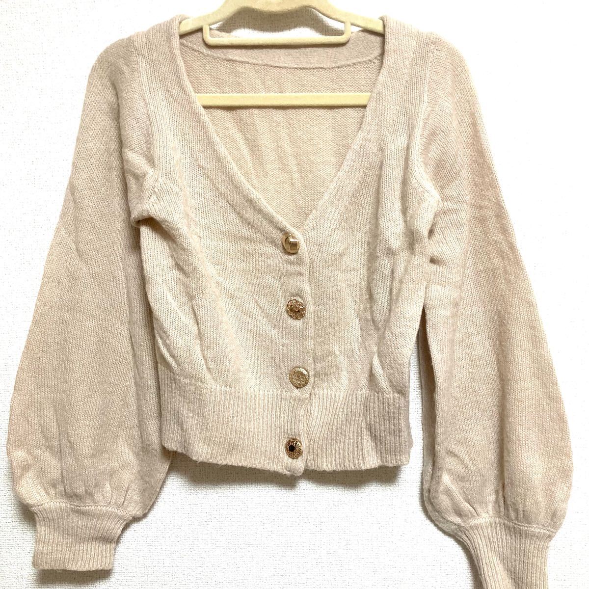 - ロイヤルパーティ ニット トップス ベージュ カーディガン 2way 可愛い ふんわり 長袖 ベージュ ボタン