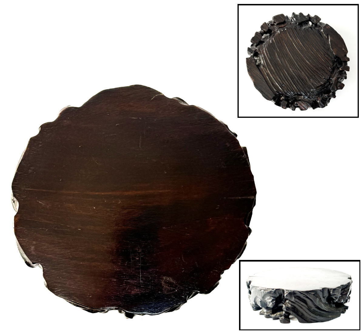 - 【送料無料】唐木手彫り花台 約2kg 玉杢 花梨 華道 茶道 香炉台 飾台 唐物 盆栽台 置物 (旧家蔵出し) WWWT099