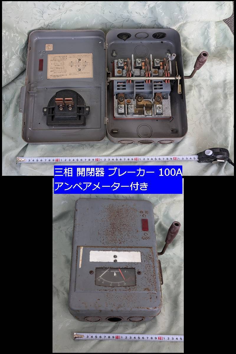 > 開閉スイッチ 三相 250V 100A ブレーカー ヒューズ式 金属ボディ アンペアメーター付き 三相交流 100V 200V 配電盤 工作機械 仮設用に最適