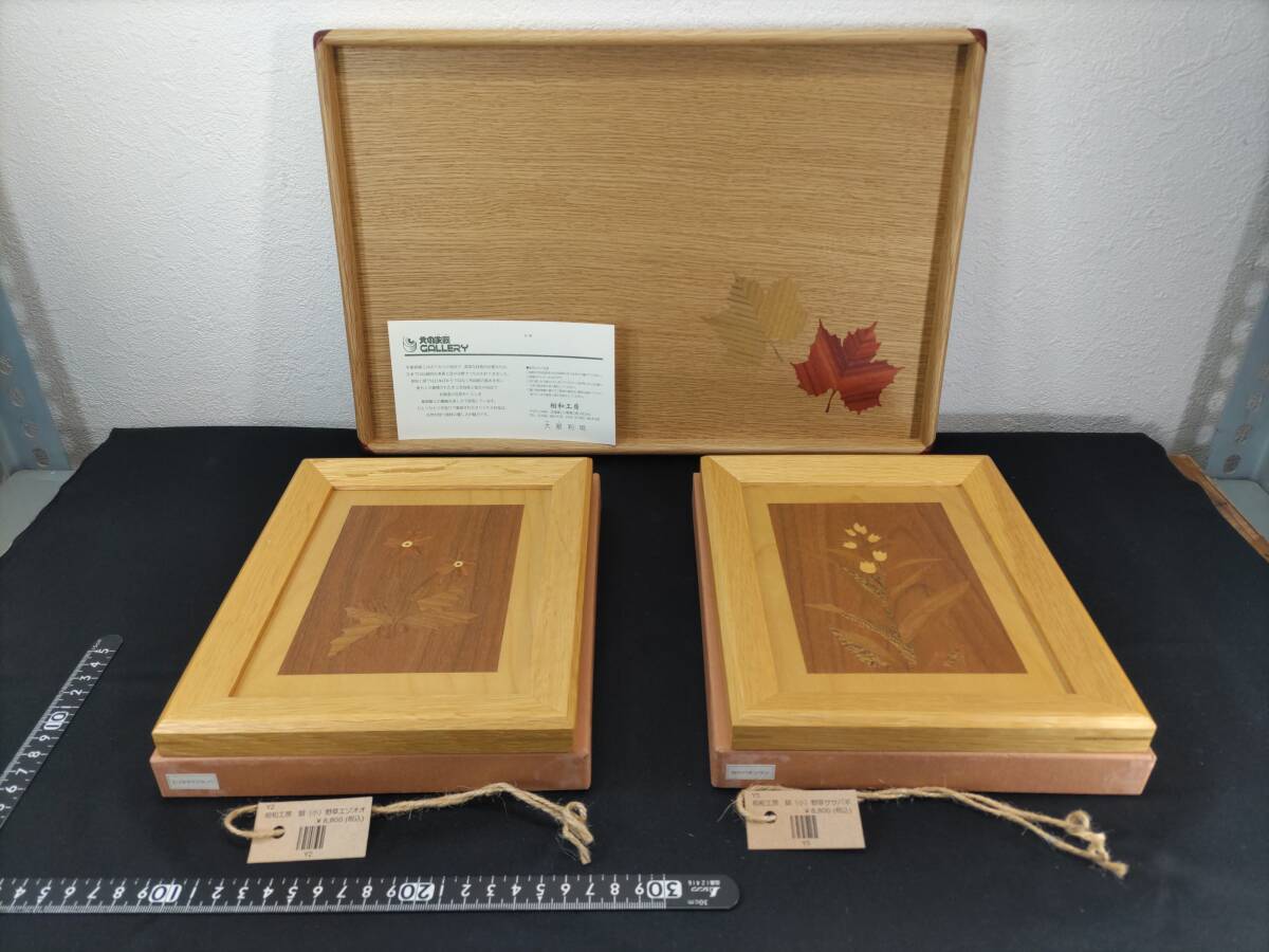 - ■送料無料!■まとめて■旭川クラフト■象嵌細工■北の象嵌ギャラリー・相和工房■木製・トレー■3点セット!