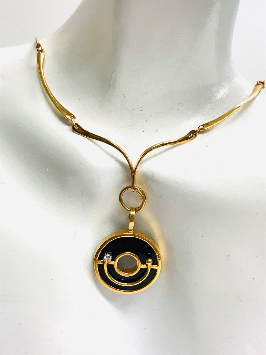 - qoj.Z9S04 K18 ゴールド オニキス ダイヤモンドデザイン ネックレス