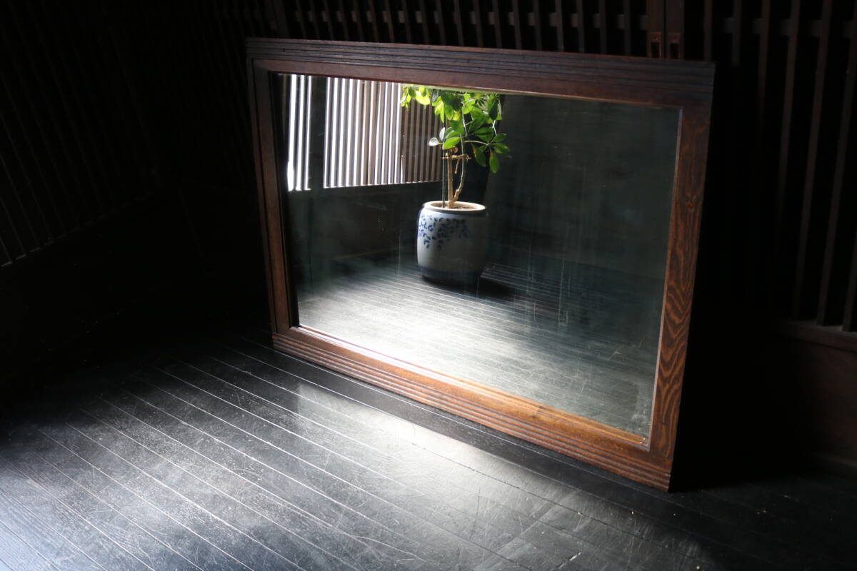 - 【伊董】C26.アンティーク!レトロ!古い床屋さんの鏡楢木枠鏡オールドチーク大正~昭和 #大正浪漫 #和家具 #壁掛け #大型ミラー #店舗什器