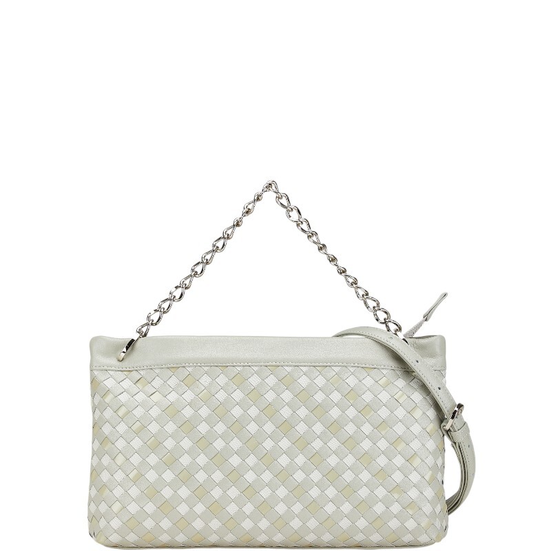 - ワコー 編み込み チェーン ハンドバッグ ショルダーバッグ 2WAY グレー ベージュ レザー エナメル レディース WAKO 【中古】