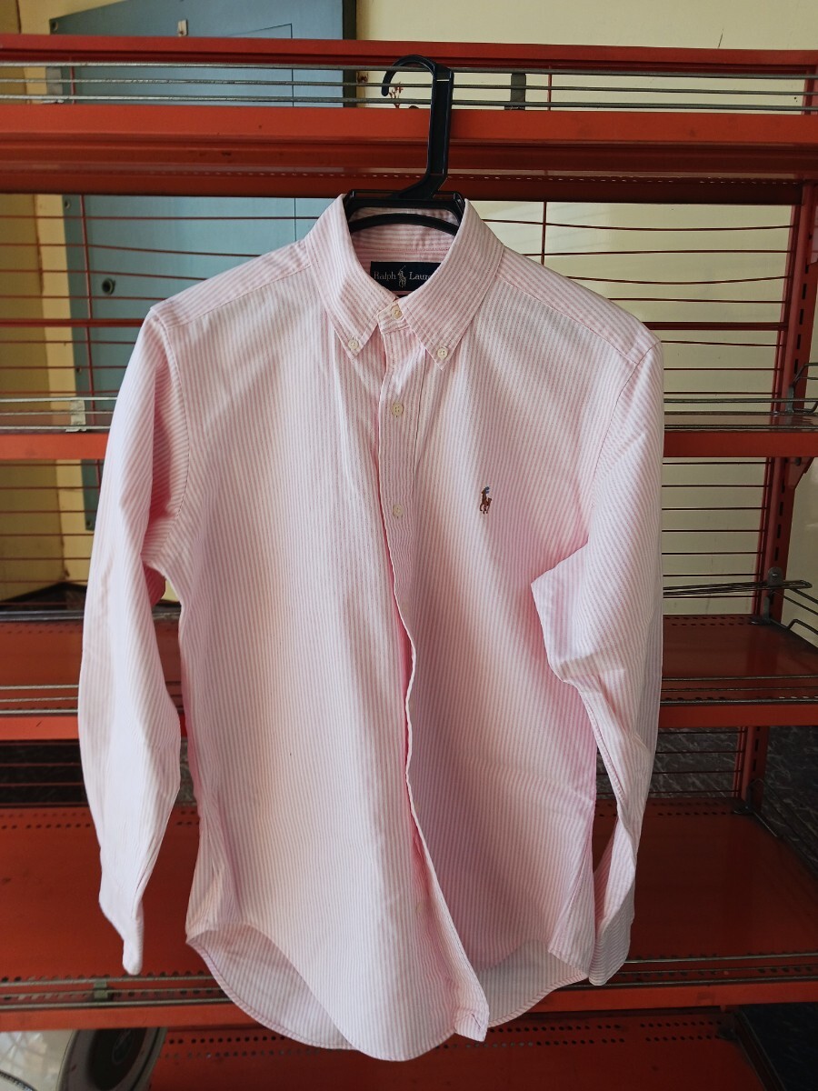 - ラルフローレン ストライプシャツ Mサイズ 15.5 ピンク ボタンダウン クラシックフィット フィリピン製 RRL Polo ワイシャツ Ralph Lauren