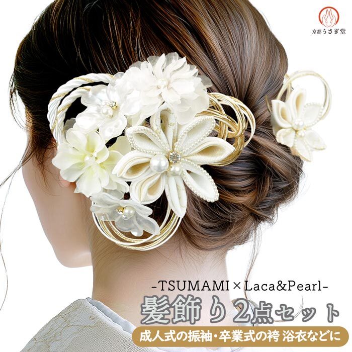 - 髪飾り 2点セット wk-338 白 ホワイト 花 花飾り 花かんざし ヘアアクセサリー 成人式 振袖 浴衣 卒業式 結婚式 成人式