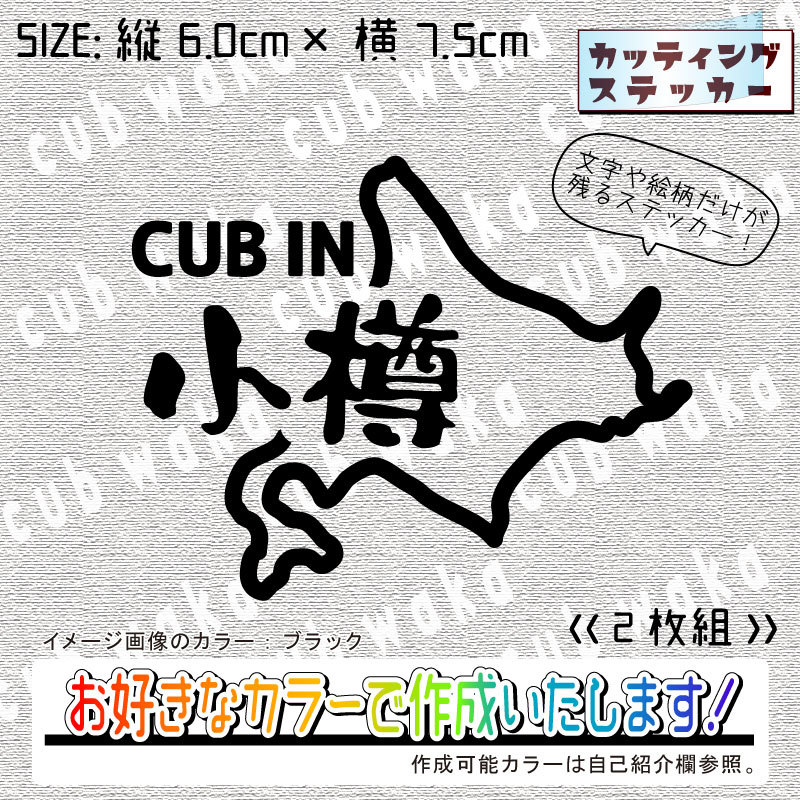 - 都道府県・北海道小樽ステッカー2枚組 文字絵柄だけ残るカッティングステッカー・CUB・カブ・リトル・ハンター・クロス・プレス