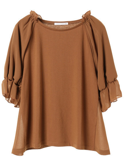 > E hyphen world gallery ジョーゼット 切替 プルオーバーカットソー ブラウン Green-62