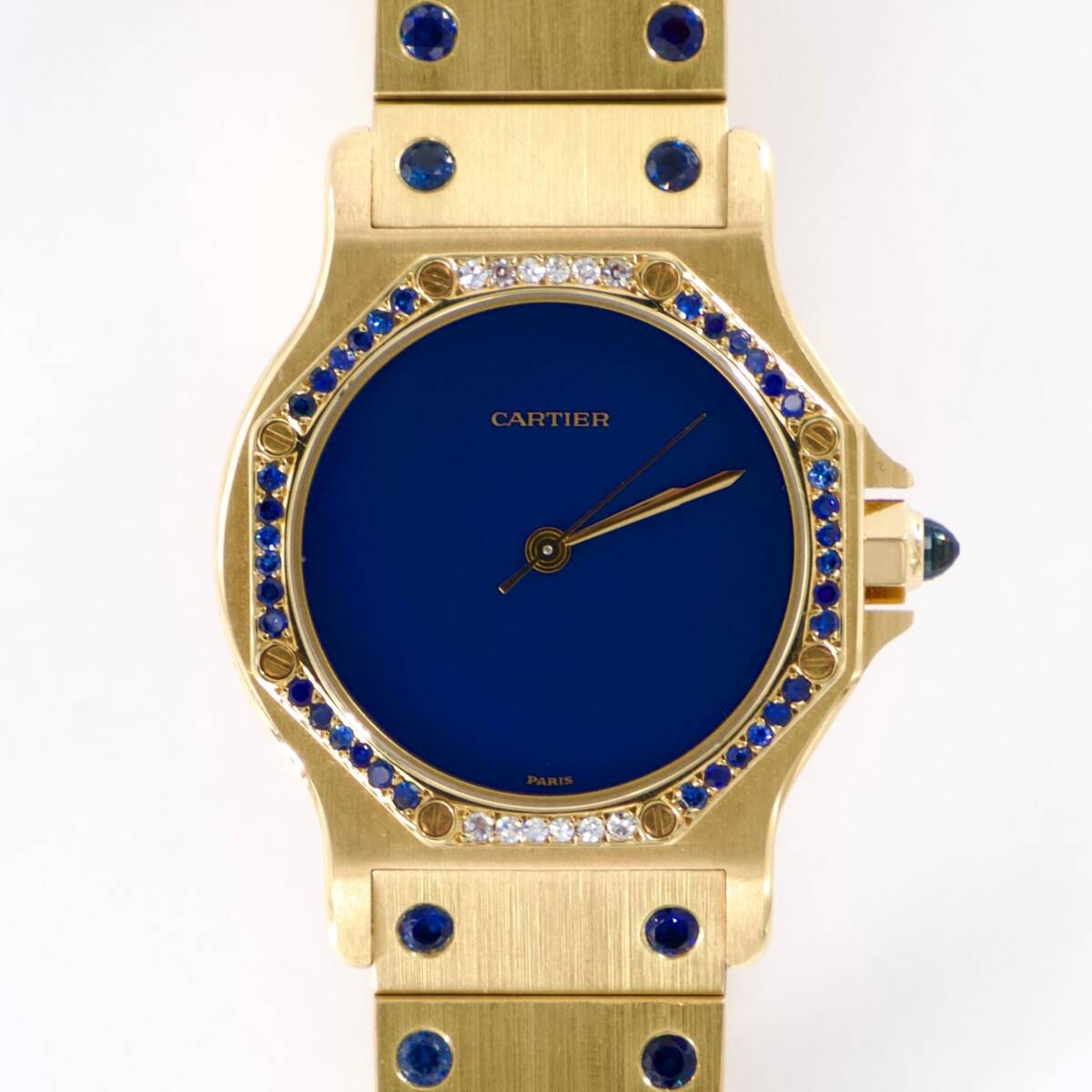 > 純正カルティエ サントス オクタゴン Ref.2965 約30MM 青文字盤 サファイヤ・ダイヤベゼル メーカー修理証明書