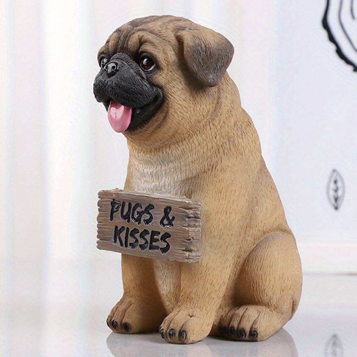 - 犬 お座りパグ フィギュア ボード リアル 置物 かわいい 15.5cm 樹脂像 笑顔 いぬ ミニチュア インテリア レジン イヌ おしゃれ t4484