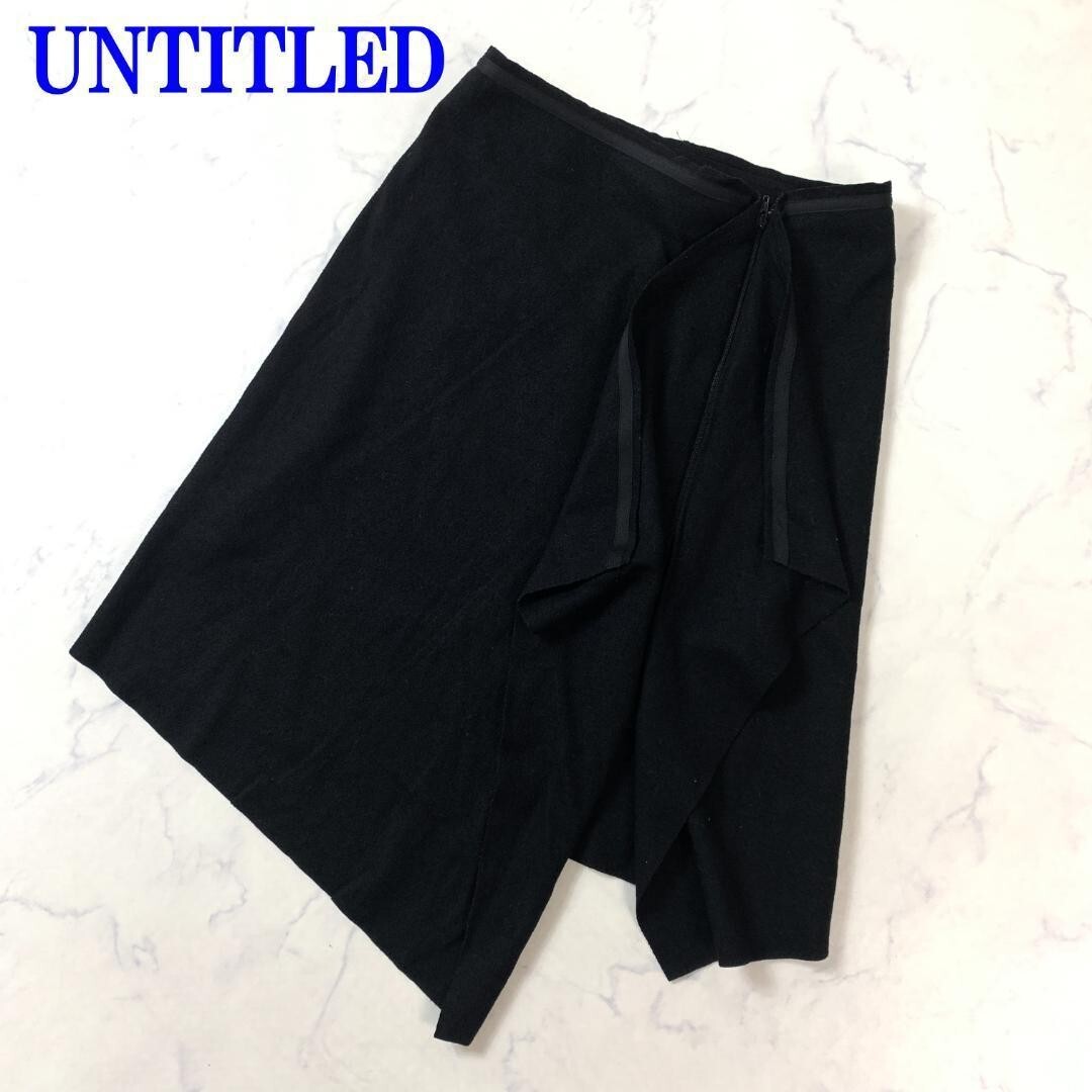 > アンタイトル アシンメトリースカート ひざ丈 黒UNTITLED ブラック アシンメトリーフレアデザイン ウール 3 C2131