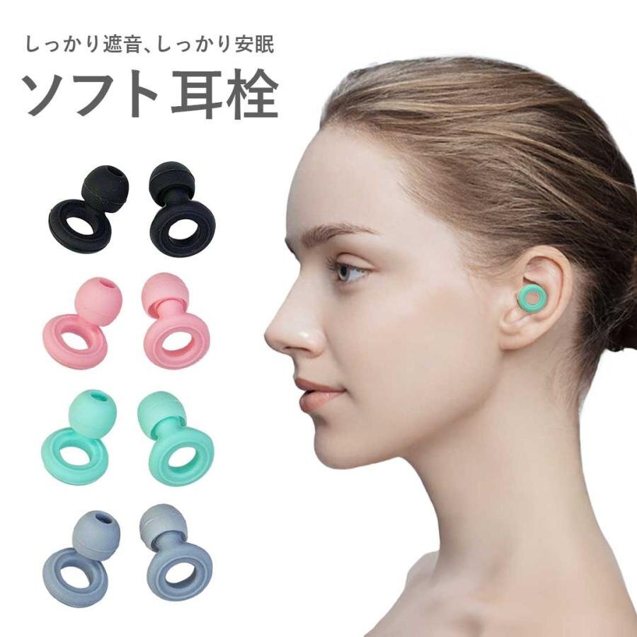 - 【4カラー】【3サイズ】【※購入後メッセージ下さい】耳栓 ーVer4ー 選べる4色 リング型 パステルカラー 3サイズ イヤーキャップ