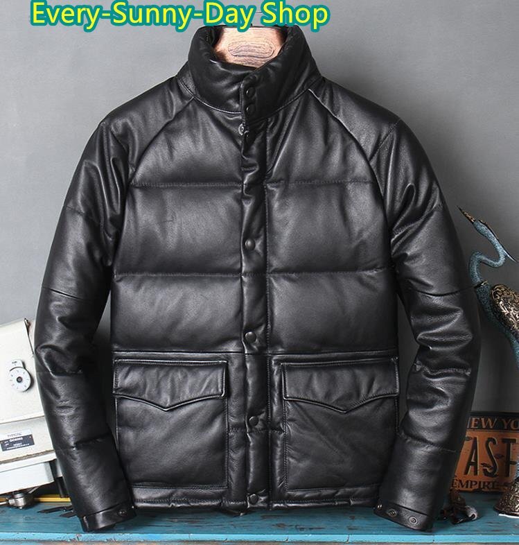 > 極美品☆90%ホワイトダックダウンジャケット/防風防寒性バッチリ/冬新品高級牛革レザーコートライダース黒/サイズ選択可