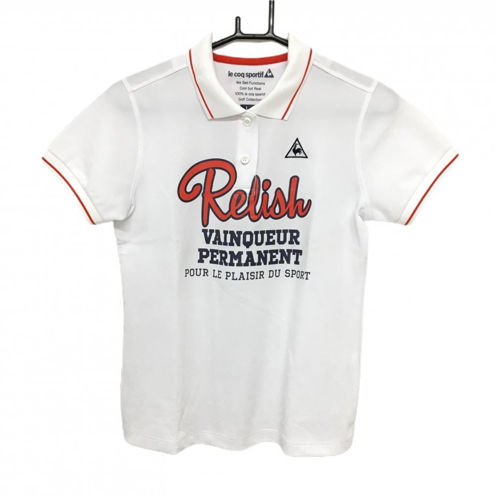 > 【美品】ルコック 半袖ポロシャツ 白×レッド ビッグプリント レディース L ゴルフウェア le coq sportif