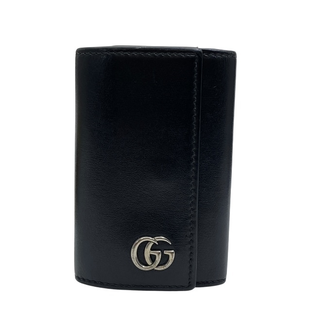 - GUCCI グッチ 435305 6連 キーケース キーリング GGマーモント レザー ブラック