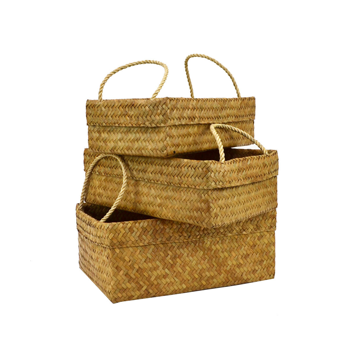 - タイ製 カチュー 取手付き 収納かご 角型 SMLセット 籠