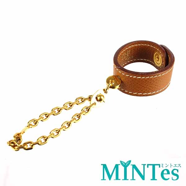 > Hermes エルメス グローブホルダー ブラウン×ゴールド金具 レザー 手袋ホルダー シンプル スタイリッシュ おしゃれ 上品 お出かけ