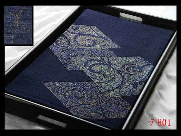 - 蔵【テ801】西陣逸品 紬 作家物 手描き 鉄紺色地 個性を愉しむ 正絹太鼓柄高級美術袋帯 ◇検◇簪着物名古屋帯和装小物帯締め
