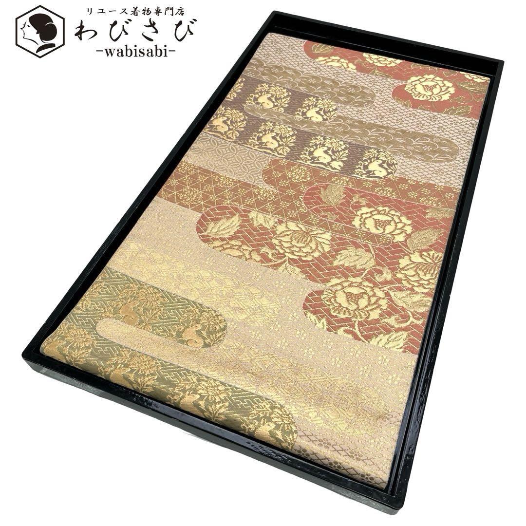 > 袋帯 霞模様 花兎 花柄 金糸 金色 フォーマル O-4788 着物 きもの kimono 和服 和装 中古 リサイクル着物 【送料無料】
