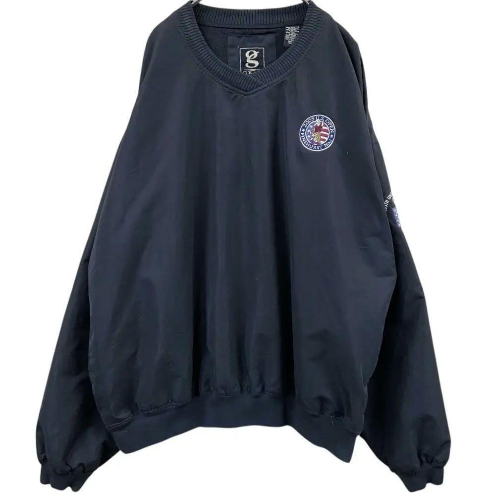 - ギア メンズナイロンプルオーバージャケット L 黒 ロゴ刺繍 重ね着【2661】