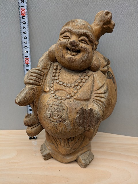 - 恵比須像 木彫り 仏像 無銘 欠損あり *EC1