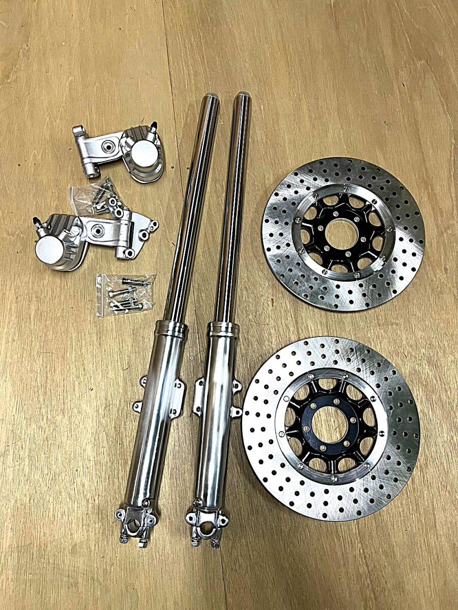 > CB750Kダブルディスクセット パンチング ローター バフ フォーク キャリパー ギヤボックス/フロントダブルCB750FOUR段付きK0 K1 K2