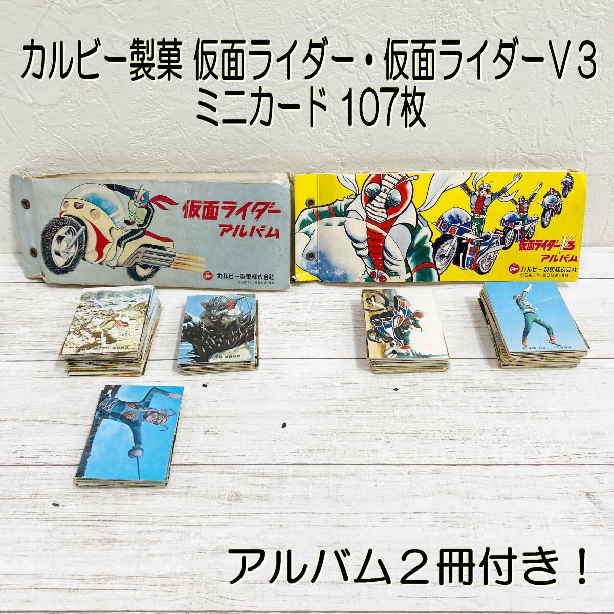 - E0EN0121/当時物/仮面ライダー/V3/ミニカード/カードアルバム/107枚/裏25局ネット 26枚/ゴシック/カルビー製菓/昭和レトロ/食玩/東映