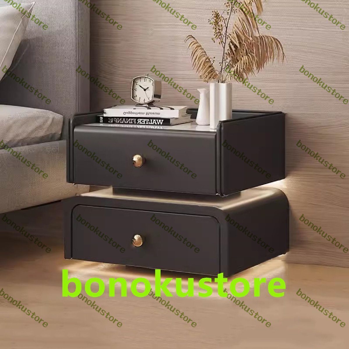 - ナイトスタンド スマートベッドルーム ベッドサイドテーブル LEDセンサーライト付き シンプルでモダンな無垢材ベッド 40*40*46cm