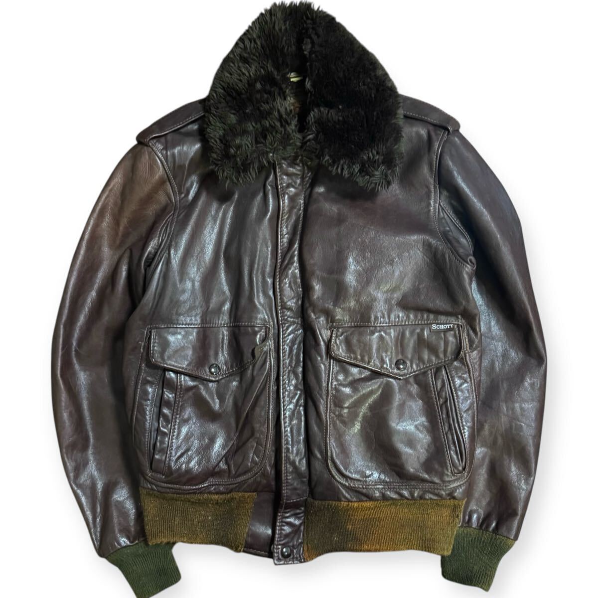 - 雰囲気抜群 Schott ショット 米国製 襟ボア レザー フライトジャケット G-1 A-2 ライナー付 サイズ38(M程度)