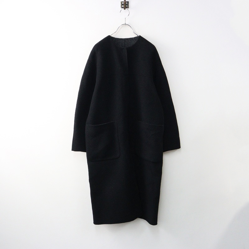 - 定価5.3万 アルアバイル allureville リバークルーノーカラーコート 1/ブラック ウール ロング アウター スリット【2400014321975】