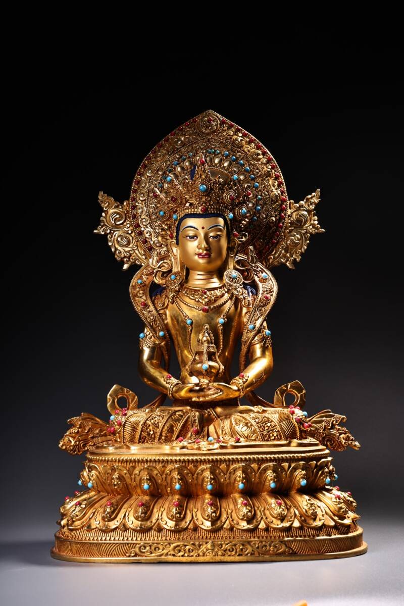 - 旧蔵 清 乾隆年制 チベット工芸 純銅 全銅 精彫 チベット伝来金 長寿仏像1体 奉納されていた 供養品 極細工 中国古玩 古美術 骨董品 203-11