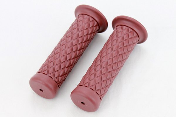 > 送料格安 非貫通 ラバーグリップ 左右セット ダイヤ柄 ワインレッド ゴムグリップ カスタムグリップ エンド付き 汎用 22.2mmハンドル用