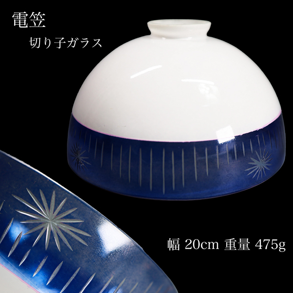 - ◇雅◇ 明治 大正時代 大正ロマン 切子 切子ランプ 電笠 高さ11.5cm/575g シェード 乳白色被せ 青色 ガラス 気泡 レトロ /HK.25.2 [G52] RT