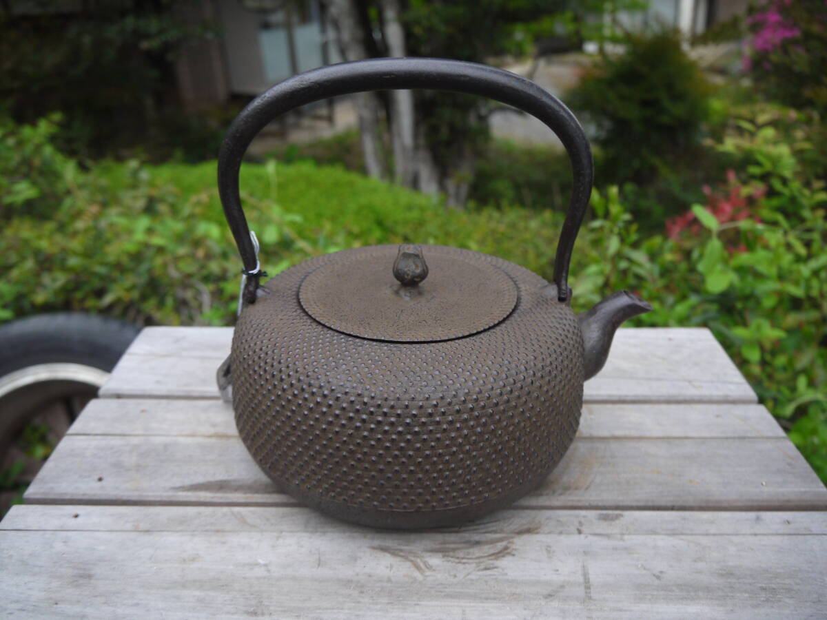 - ★【BO40426】中古未使用 南部鉄器 南部鉄製 鉄瓶 丈秀堂 アラレ 平丸型 1.9 アンティーク 急須