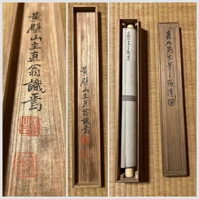 - 【模写】黄檗直翁蔵 田能村直入 羅漢図 掛軸 木箱 検中国日本南画