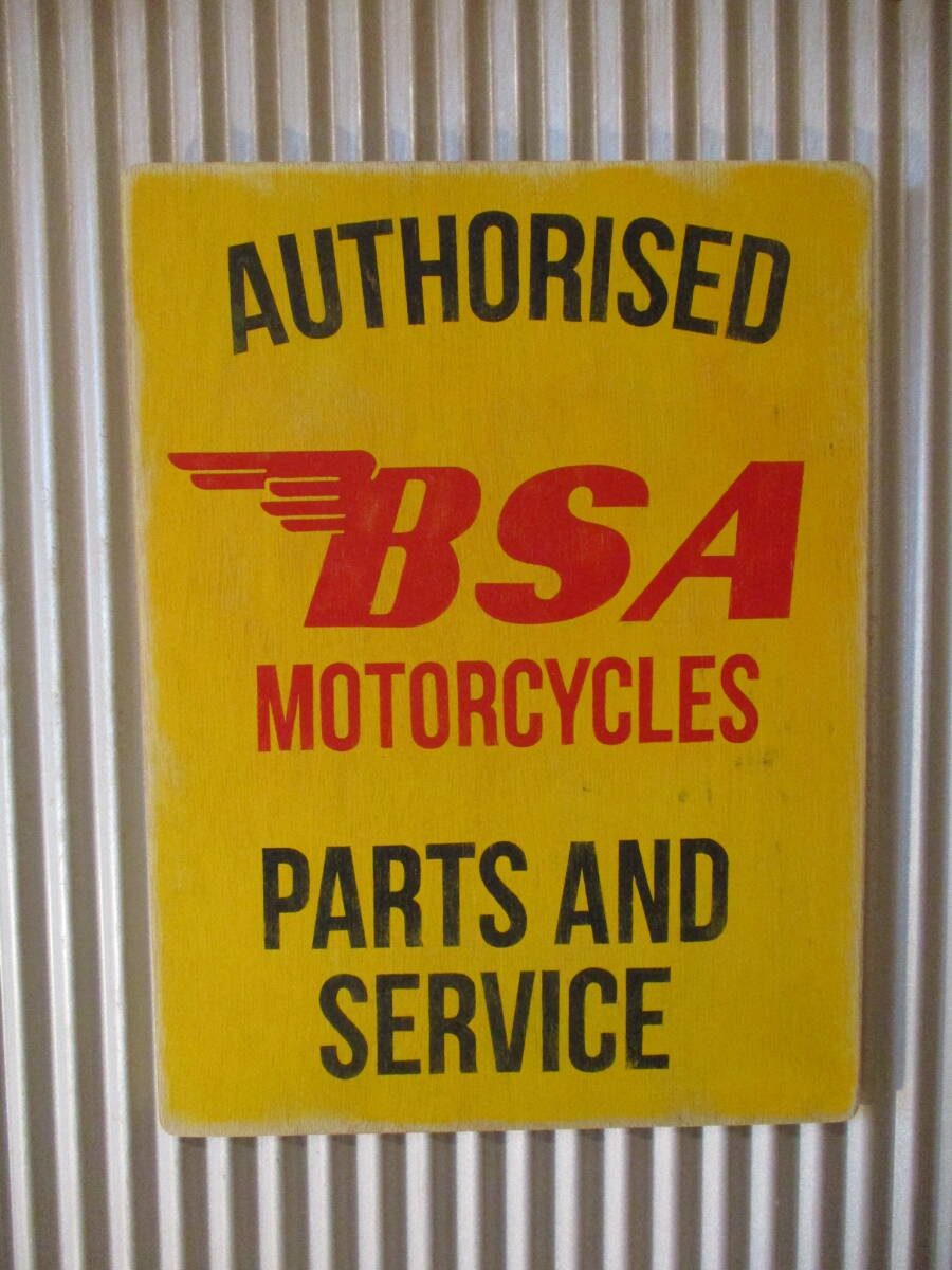 - インテリア木製看板 BSA MOTORCYCLE検)アドバタイジング企業販促ガレージカスタムTRIUMPHMATCHLESSUK50s60s70s
