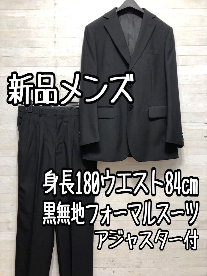 - 新品☆メンズ身長180ウエスト84アジャスター付♪黒系フォーマルスーツ〇G488
