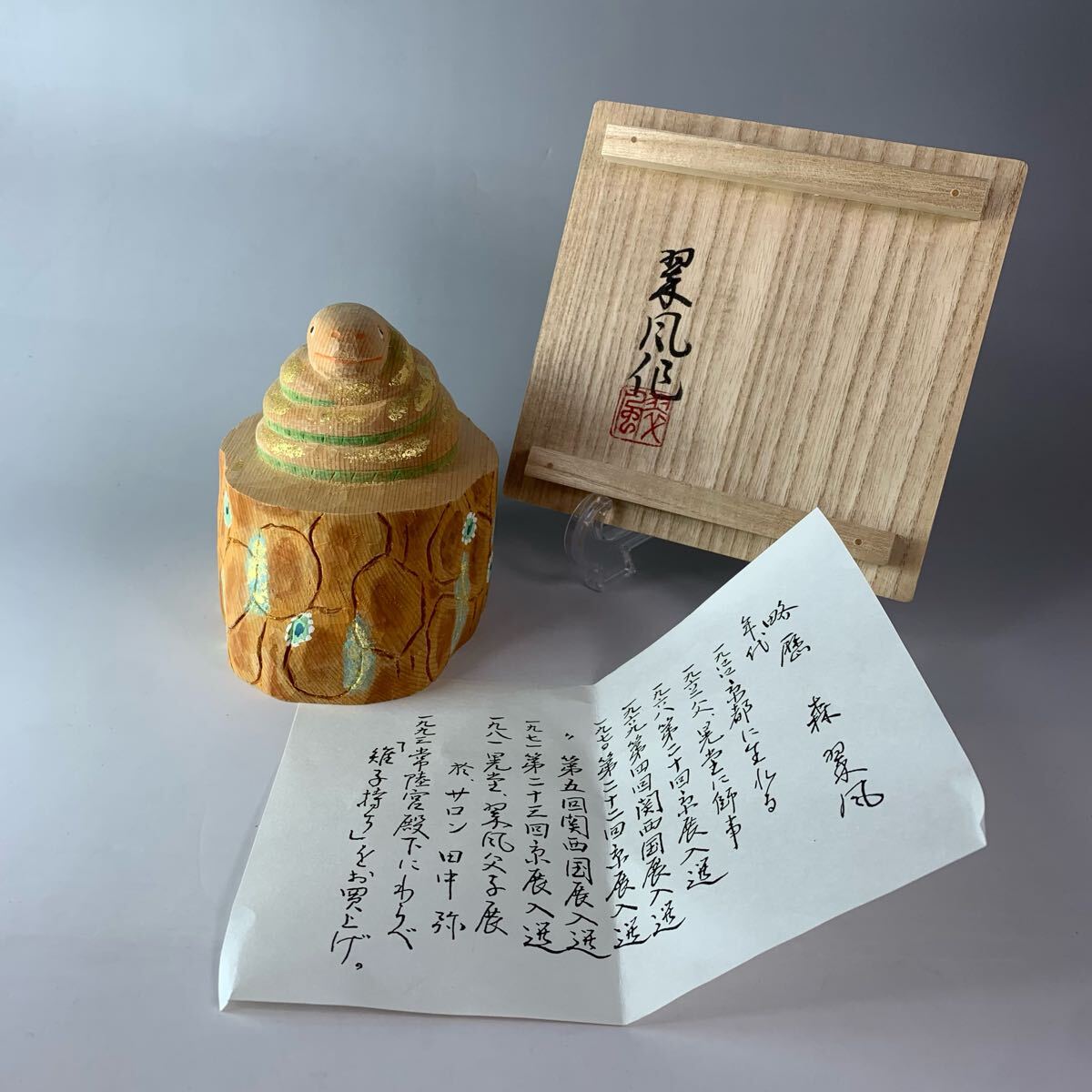 - 森翠風 木彫『巳』金彩色 蛇の置物 共箱 師・父晃堂 上代70000 木彫彩色 へび 蛇 美術品 彫刻