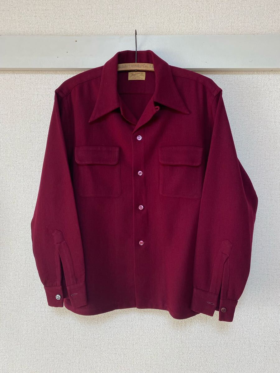 - 送料無料 アメリカ買付 1950s Jayson ウールシャツ オープンカラーシャツ 長袖シャツ ヴィンテージ ビンテージ バーガンディ ワインレッド