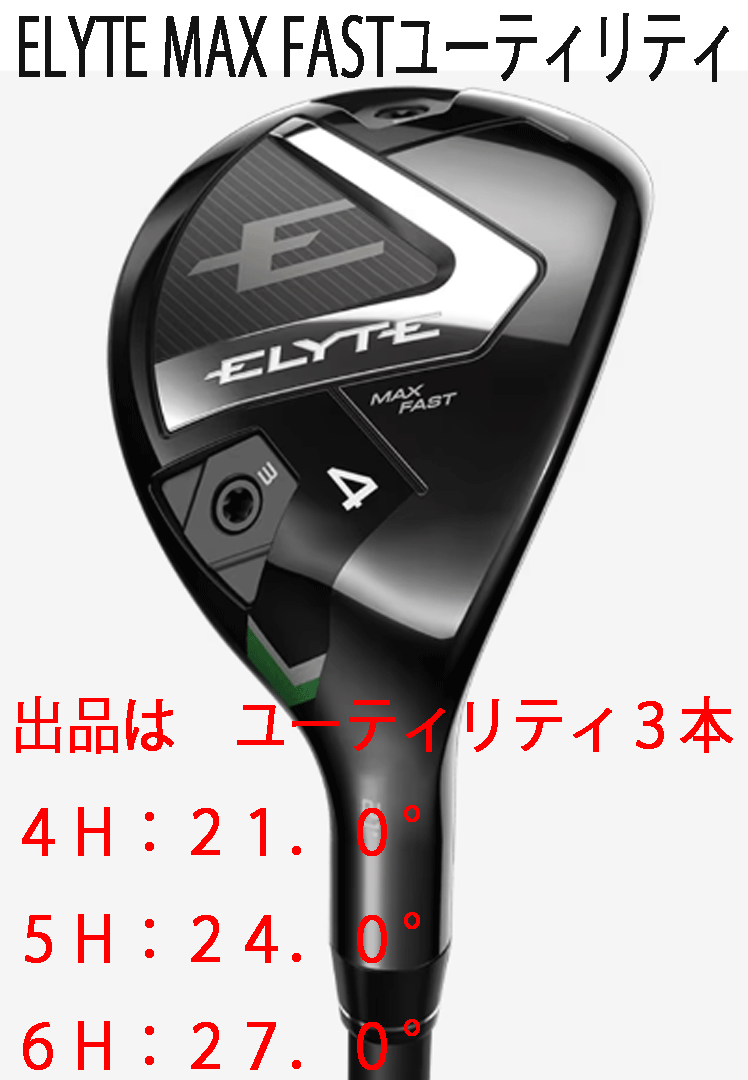 > 新品■2025.2■キャロウェイ■ELYTE-MAX FAST■ユーティリティ3本■4H:21.0/5H:24.0/6H:27.0■LIN-Q GREEN-40 for CALLAWAY カーボン■SR