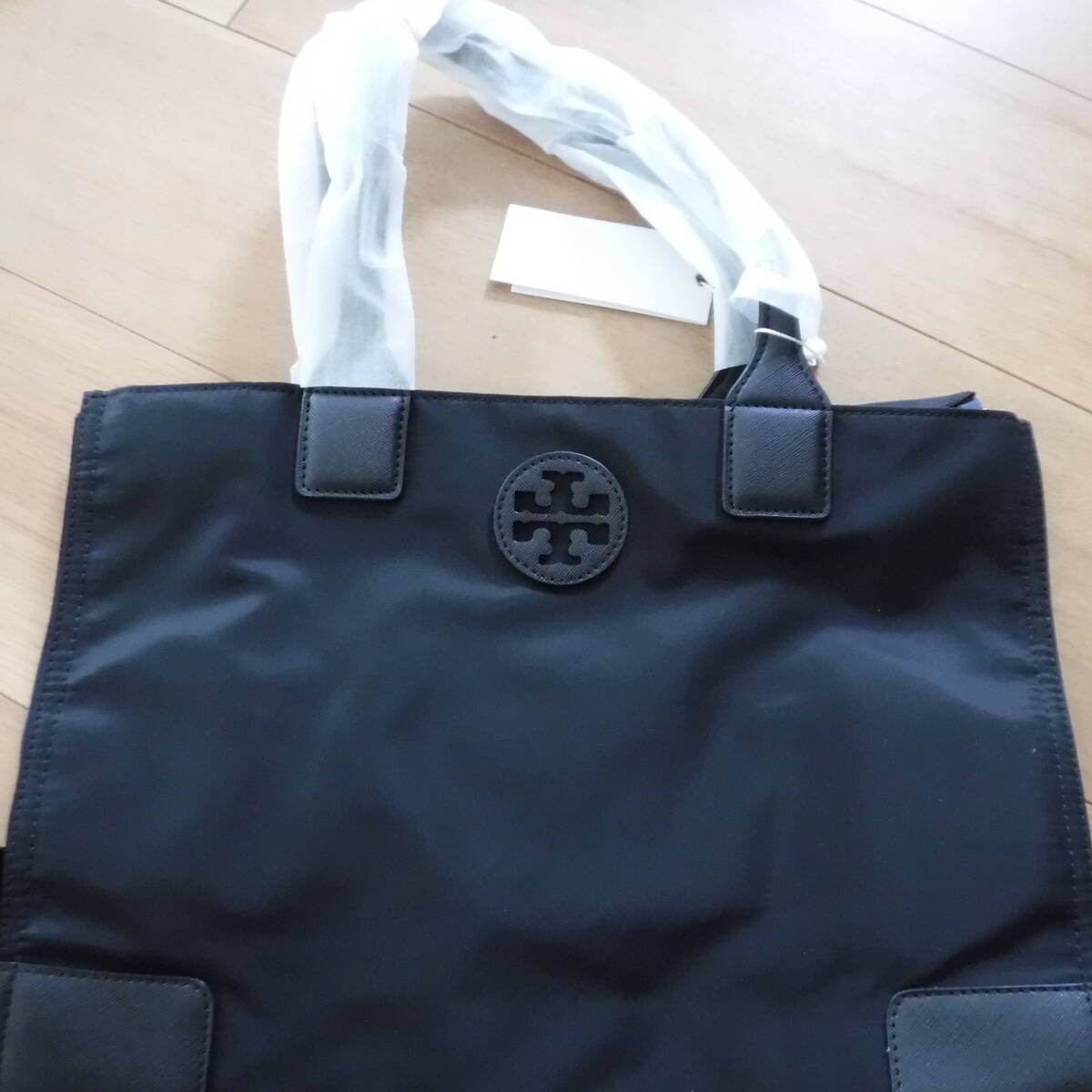 > 税不要特価 新品タグ付 ハワイ購入!TORY BURCH トリーバーチ 黒 肩~OK 折りたたみ可 大きめ トートバッグ♪チャック式 エコバッグ☆