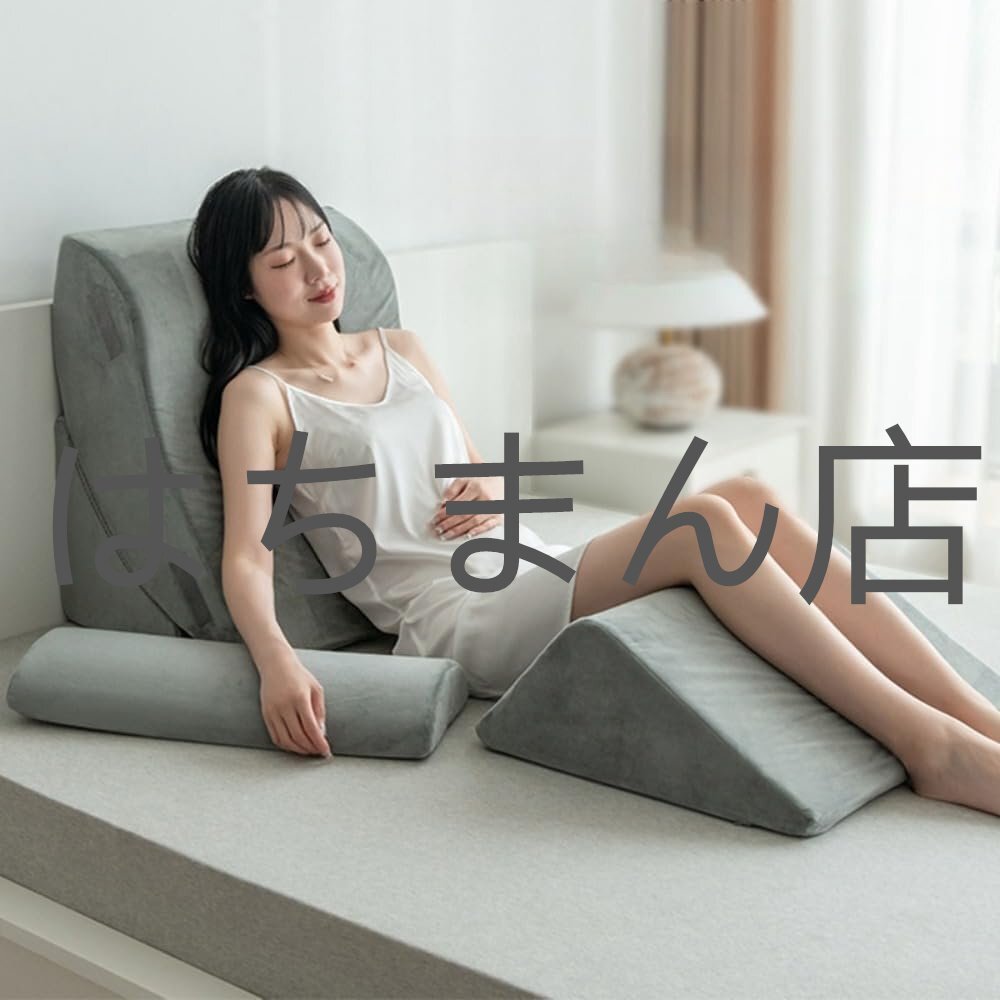 > 三角クッション 三角枕 ベッド背もたれ 腰枕 なだらか 足枕 傾斜枕 斜めマット 高反発 クッション TV枕 足枕付き 位置調整可能 (灰です)