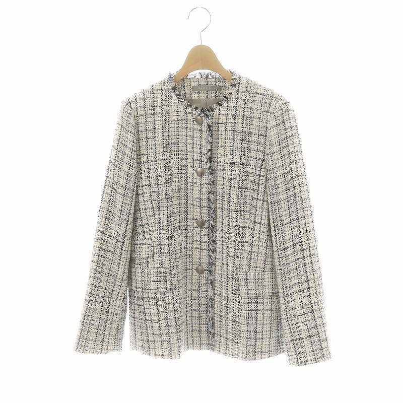 - セオリーリュクス theory luxe 23SS Crevon Trudel ツイードジャケット ノーカラー フリンジ 038 白 青 黒 /MI ■OS レディース