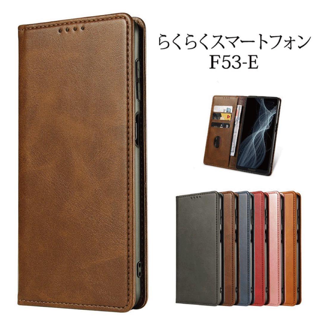 > らくらくスマートフォン F-53Eケース ベルトなし マグネット 手帳型:ブラウン
