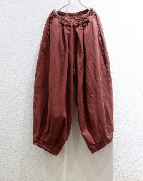 - jm デニム生地 パンツ ズボン 綿100% アンティーク風 ロマンファッション ゆったり レッド