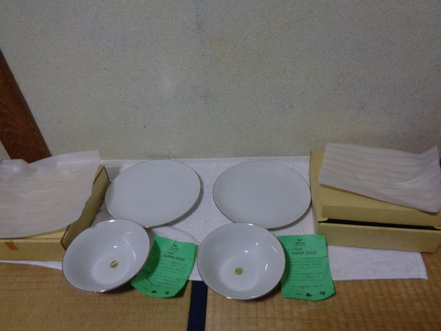 - 美濃焼 本陶/レンジ用食器 SUPER GOLD/中鉢&皿 2箱-2セット/中鉢2個&プレート2枚/Honto ORIGINAL COLLECTION/箱入未使用美品-長期保管品