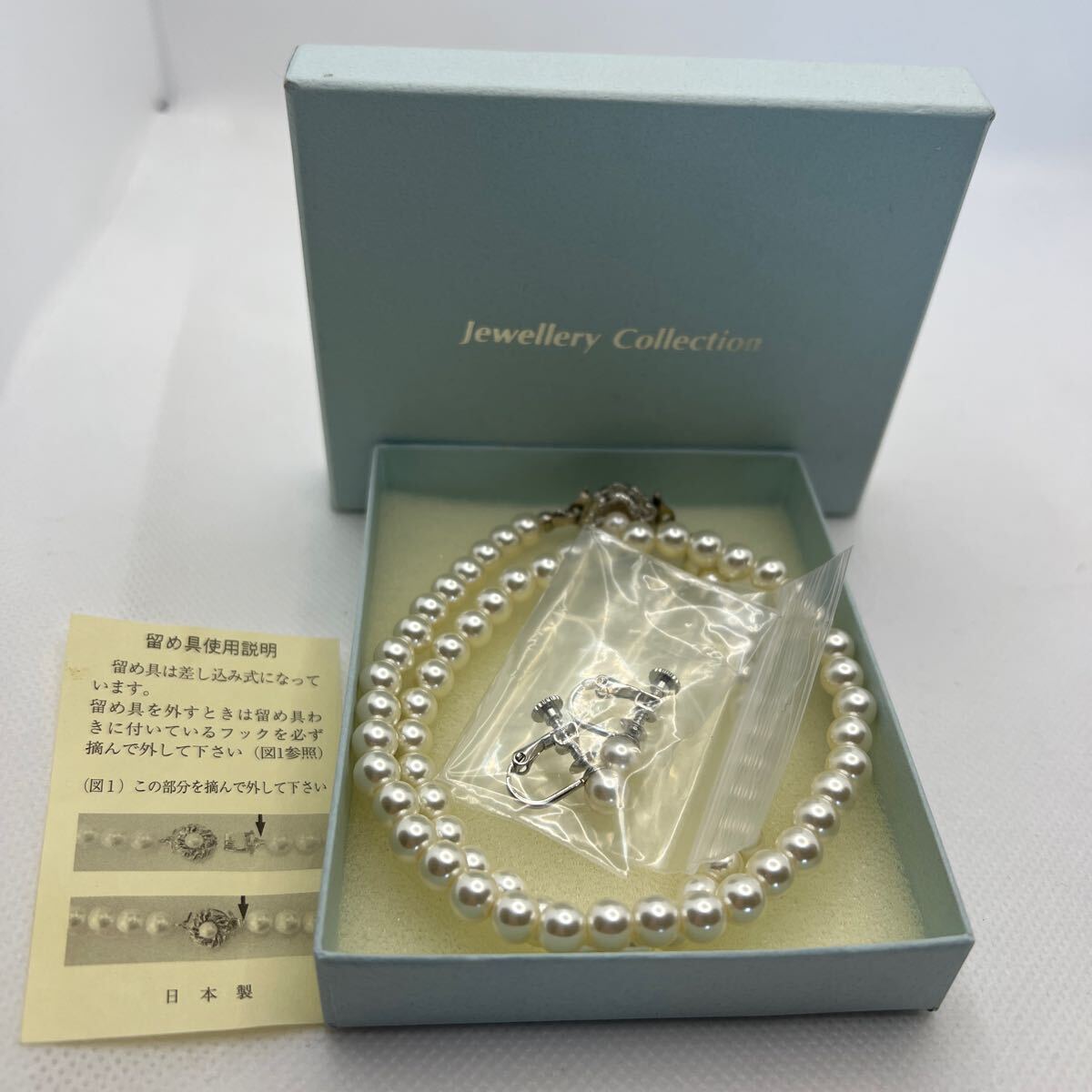- T3-15-2 未使用!日本製 人工パールネックレスとイヤリングセット 冠婚葬祭 卒業式 入学式 アクセサリー