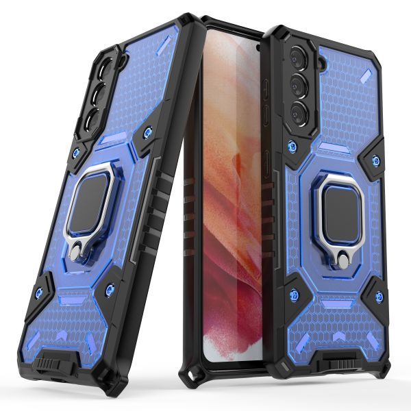- A在庫処分 青 Galaxy S21 5G 指リング付き ケース 衝撃吸収 カバー ギャラクシー SCG09 SC-51B 超頑丈 保護 丈夫 米軍 耐衝撃 スタンド機能